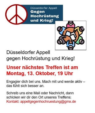 Der Düsseldorfer Appell gegen Hochrüstung und Krieg ist eine Initiative, die sich für Frieden und Abrüstung in Deutschland und Europa einsetzt.